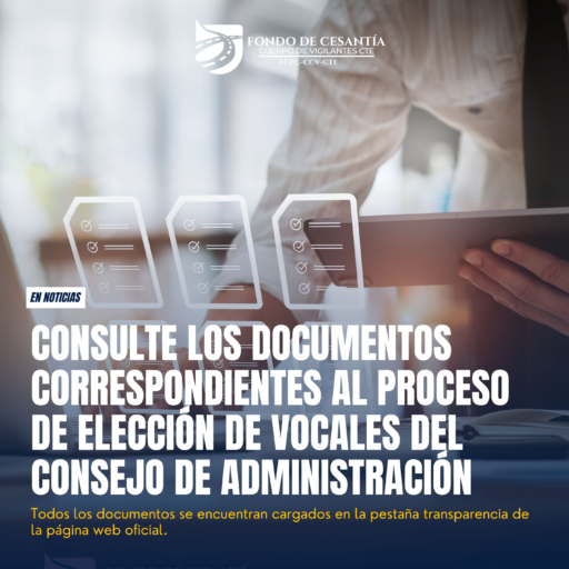 El Fondo de Cesantía de la CTE comunica a sus partícipes que, conforme a lo señalado en la Convocatoria de Inscripción de Postulaciones, inicia el proceso de elección de los Vocales del Consejo de Administración. Para ello, se difunde en la página web oficial en la pestaña Transparencia, el cronograma de la elección donde se detallan las actividades semanales.